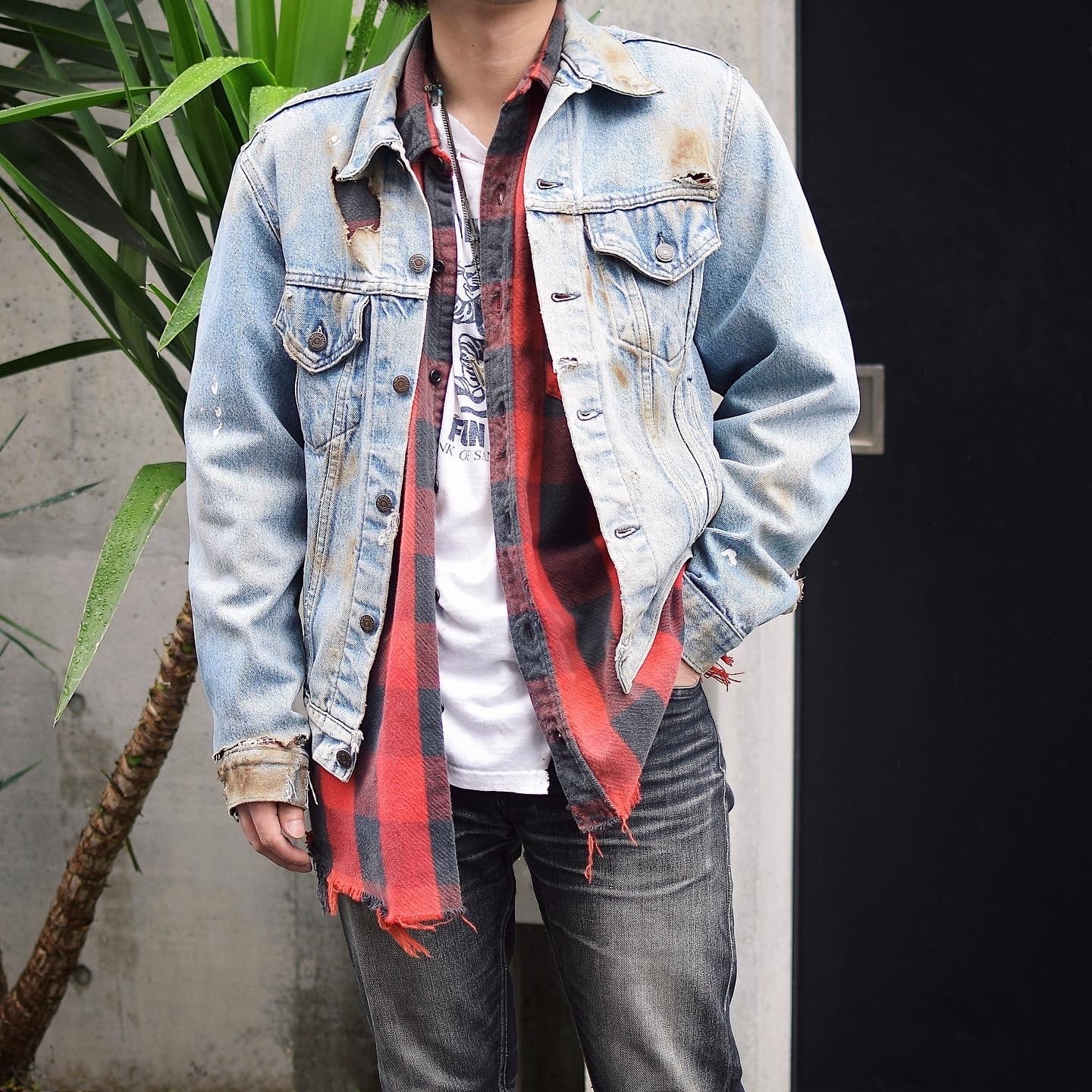 焦げた跡やダメージなどの風合いが非常にクールなリーバイスのデニムジャケット。