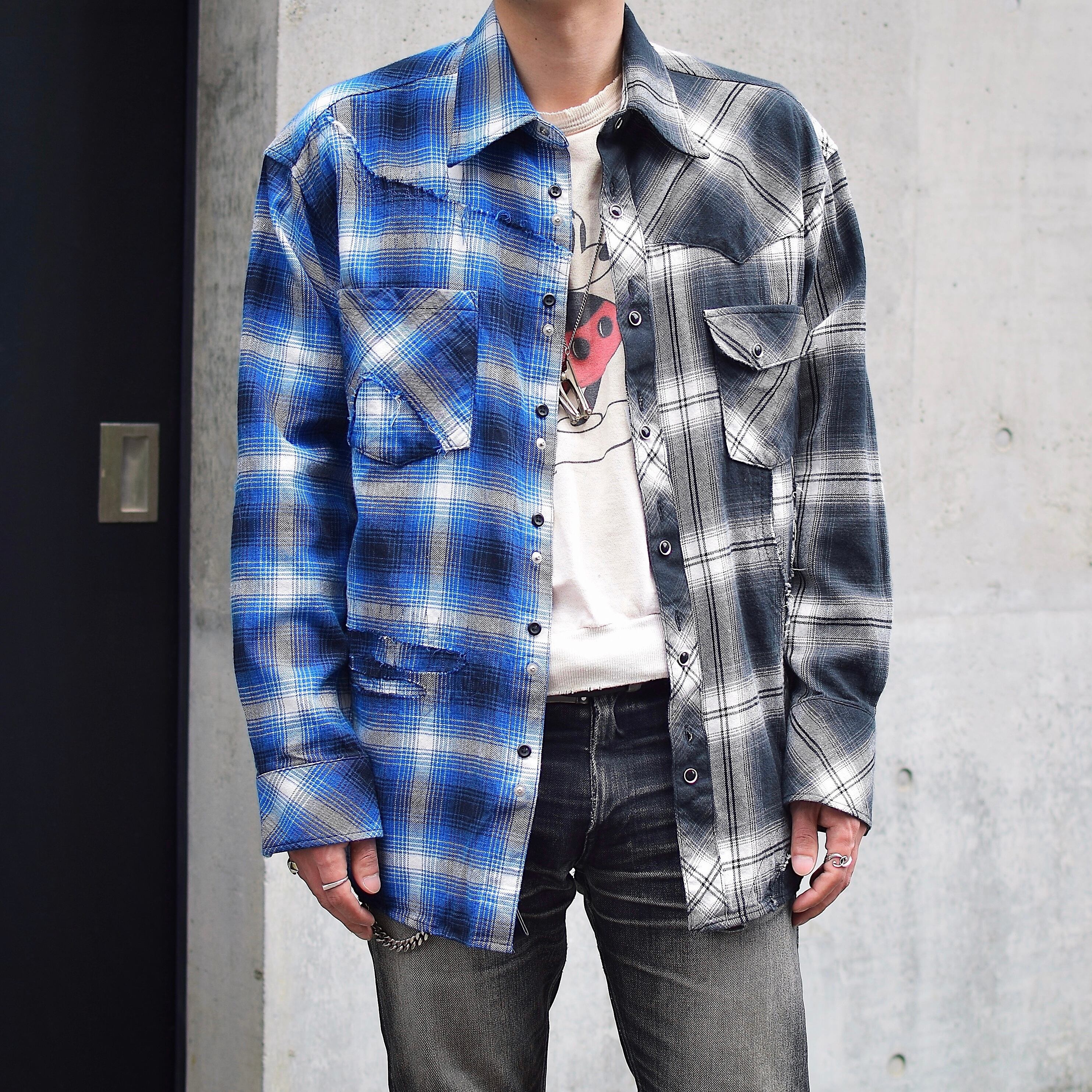 001Standerd shirtと002Western shirtを贅沢にドッキングした宮城氏らしいリメイクネルシャツ。