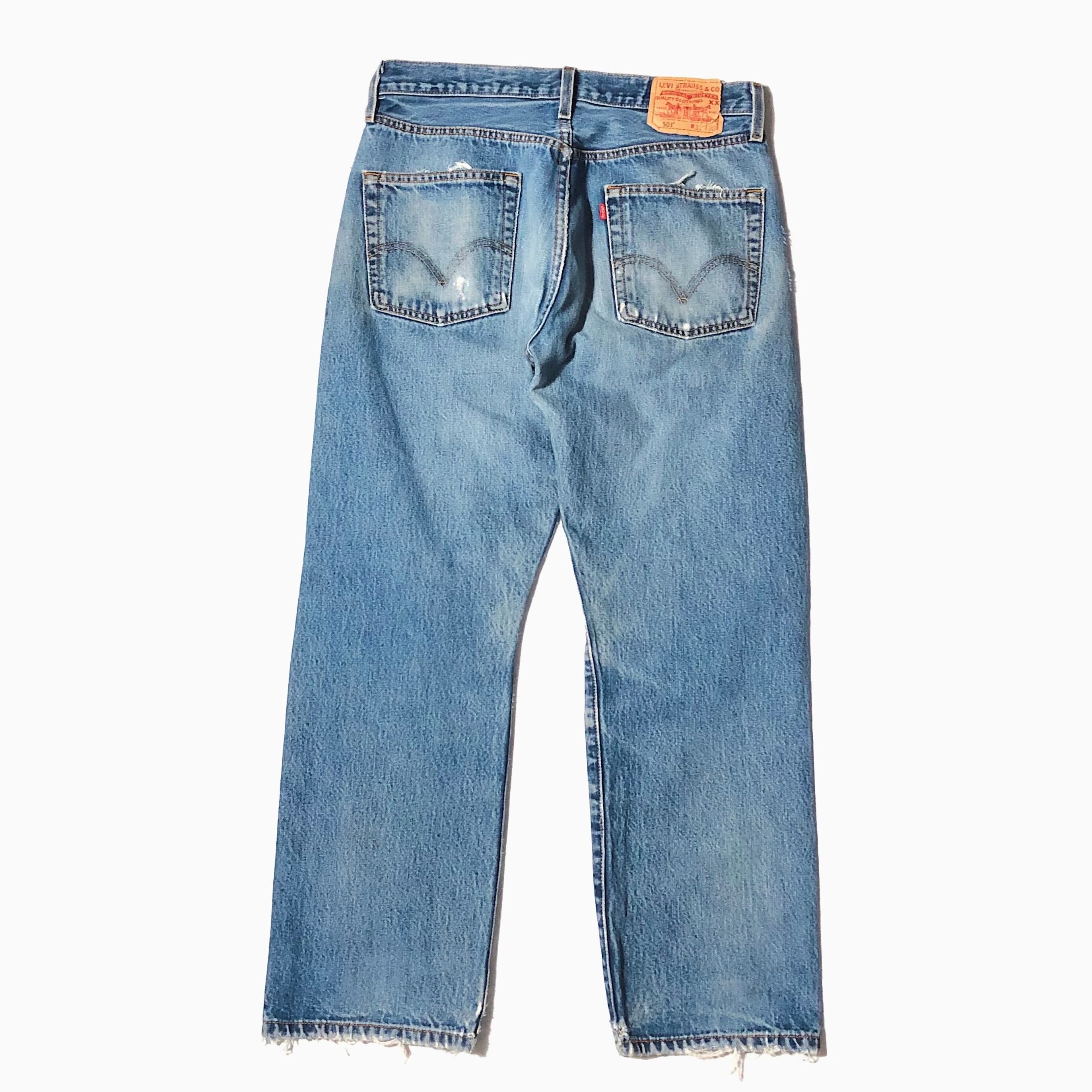 経年変化によるダメージや風合いが非常にクールなリーバイスの501デニムパンツ。