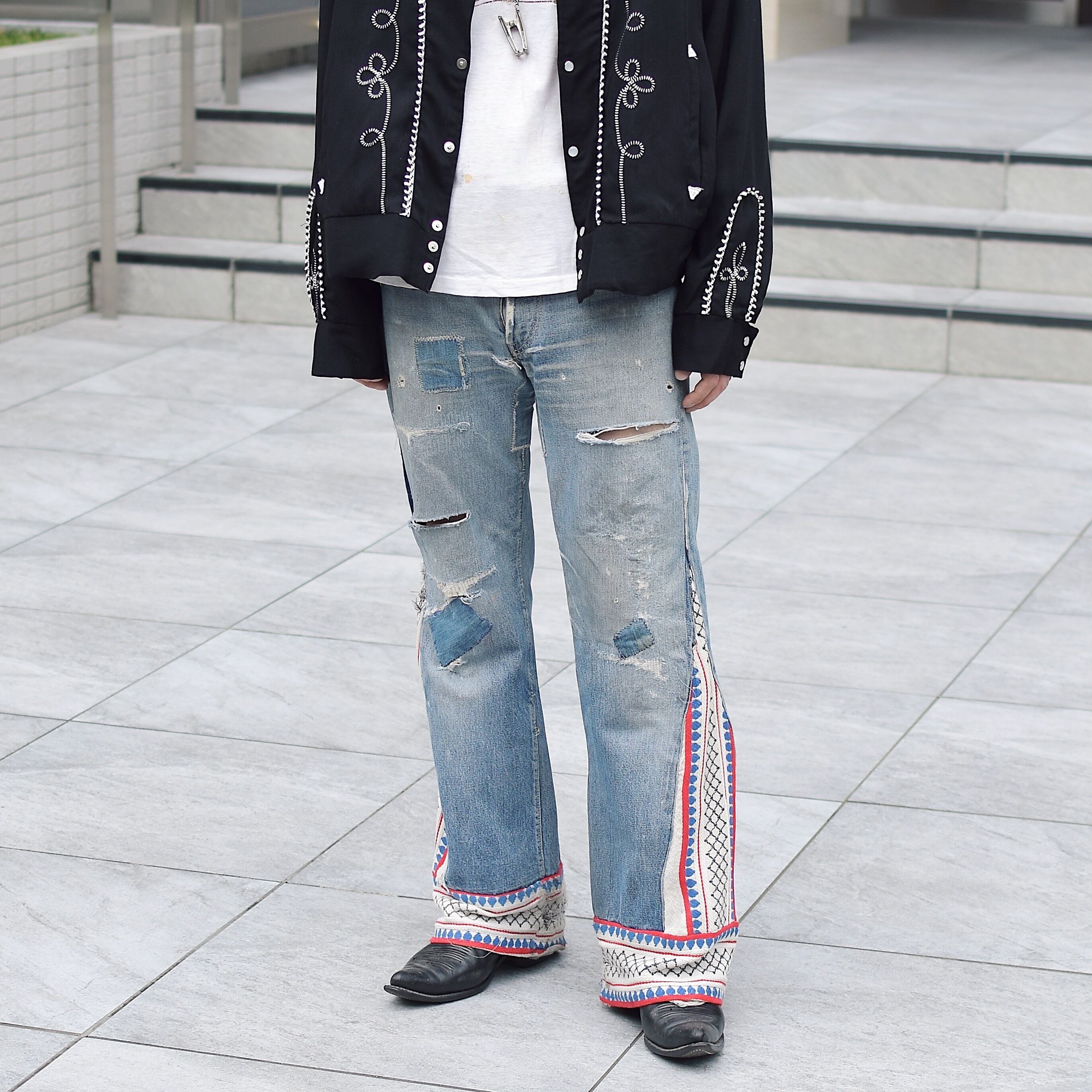 経年変化によるダメージやリペア、フレアにカスタムされたレングスなどの風合いが非常にクールなリーバイスのBig Eデニムパンツ。