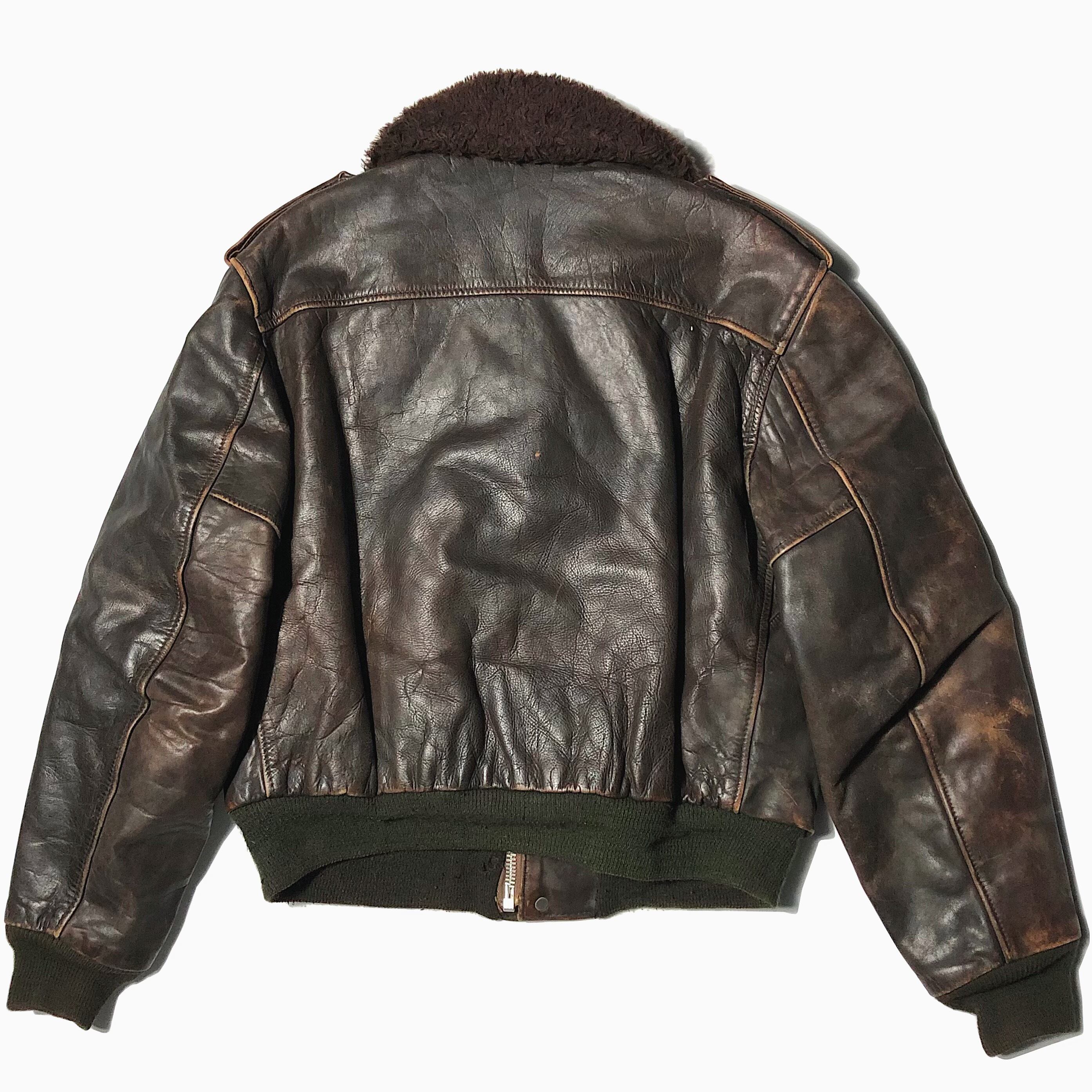 レザーならではの重厚感溢れる風合いと経年変化による質感や味が非常にクールな70年代のG-1フライトジャケット。