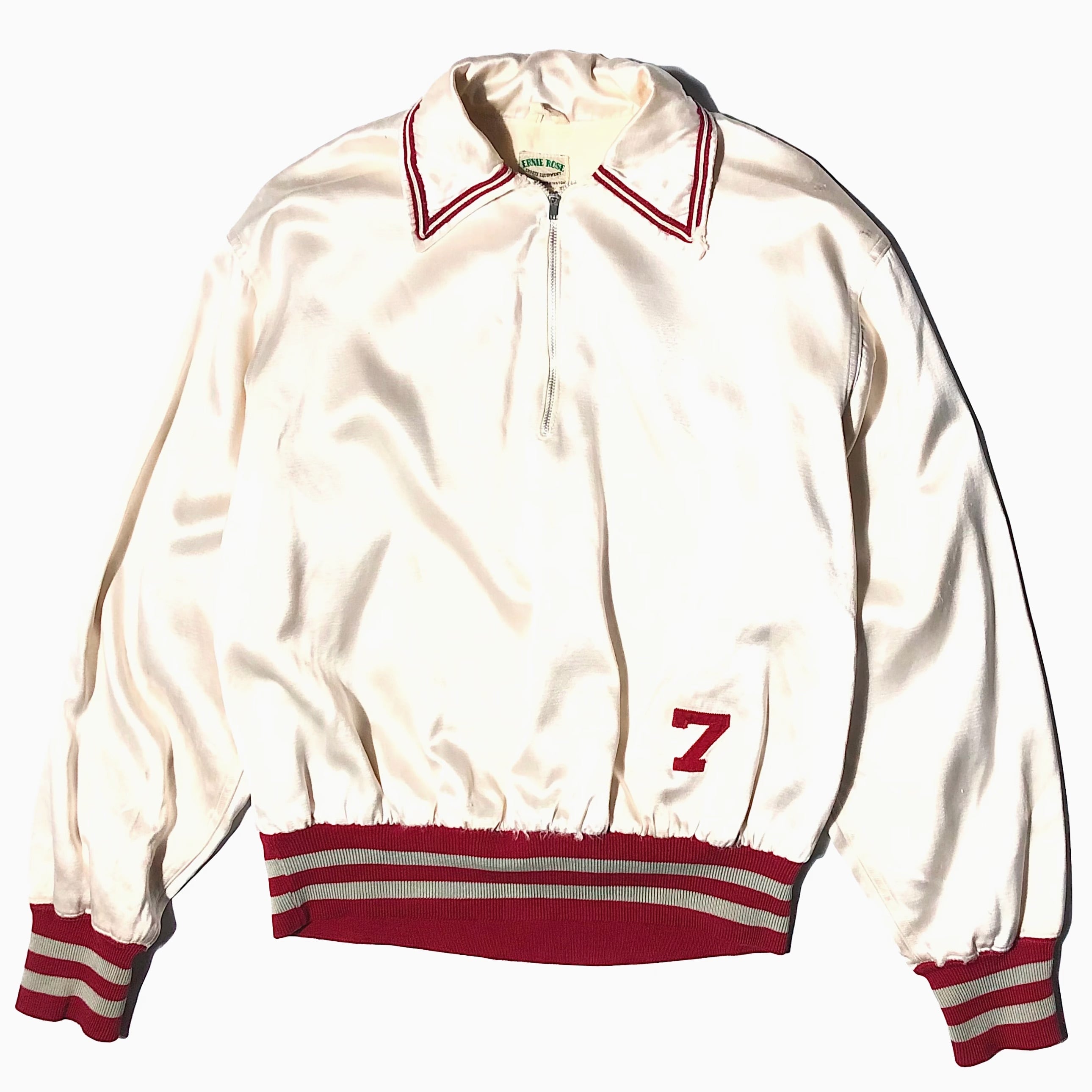 経年変化による風合いやサテンならではの光沢感がクールな、40年代頃のハーフジップのジャケット。