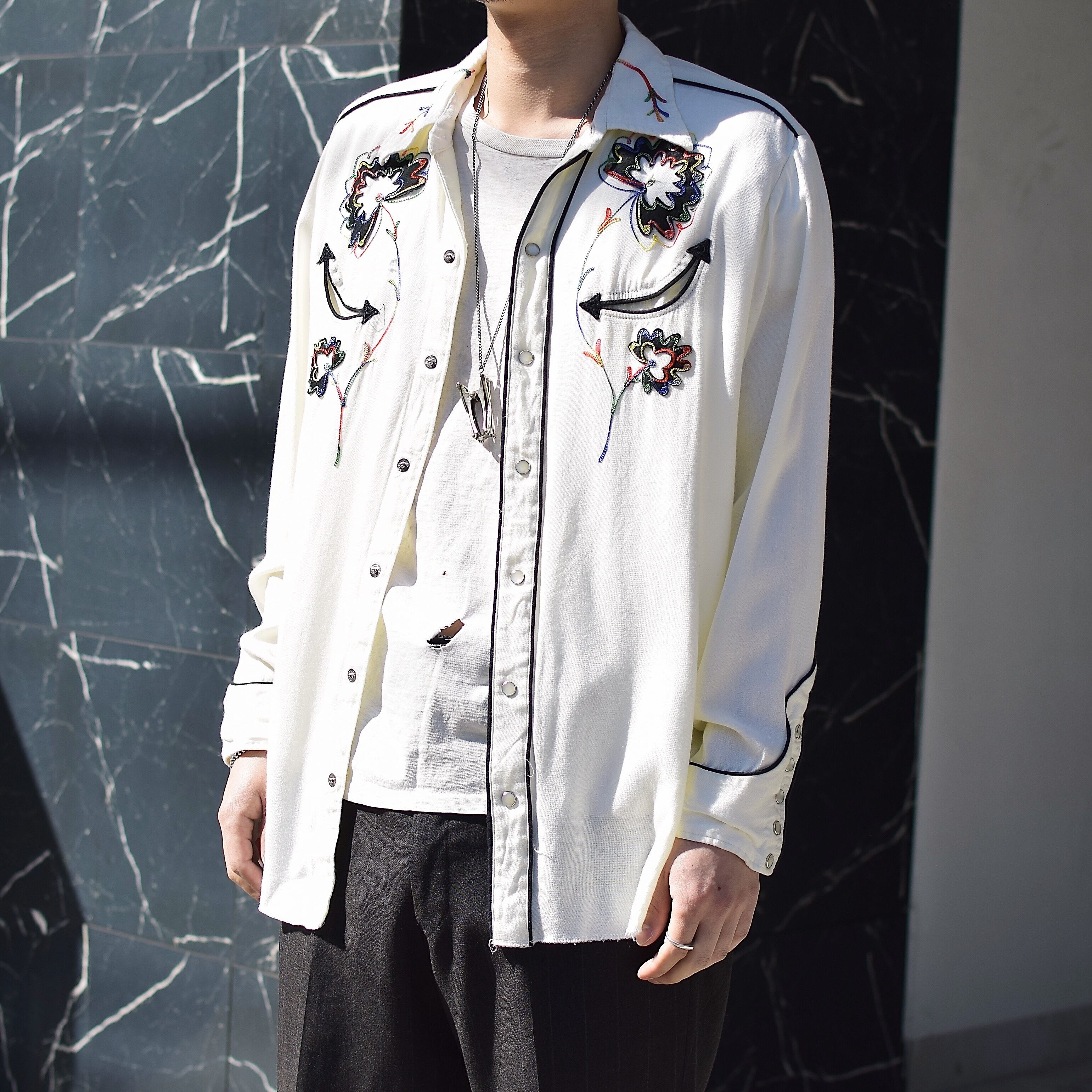 洗練されたカラーや目を惹く刺繍、レーヨンならではの素材感がクールな50年代のウエスタンシャツ。