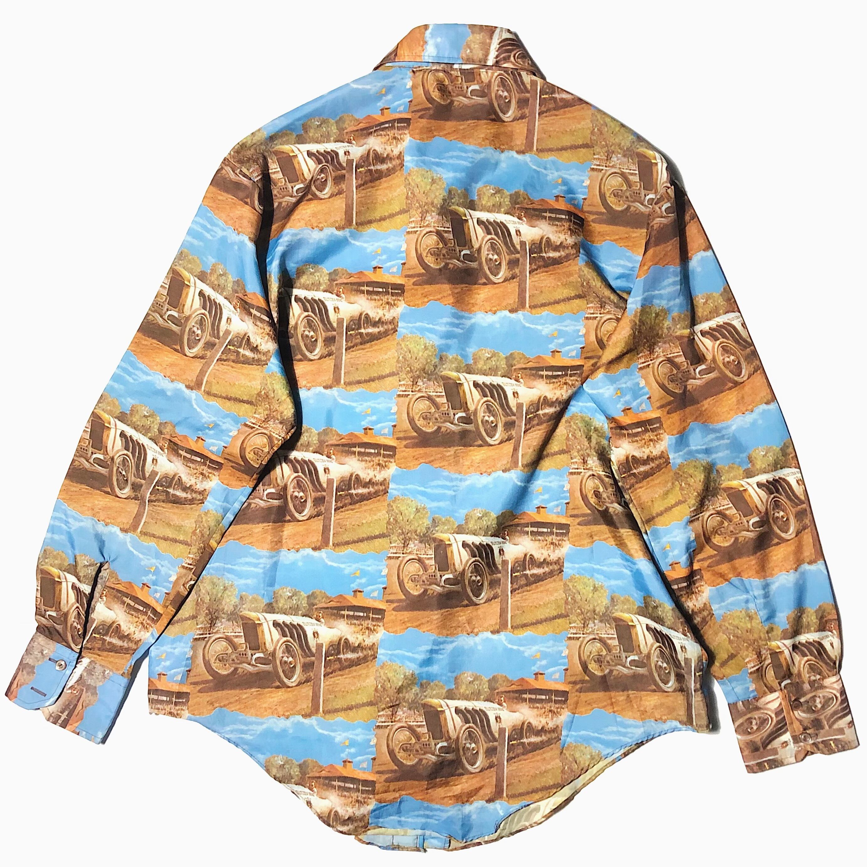 Vintage 70's【Sage】"BUTZEN BENZ" Polyester Shirt