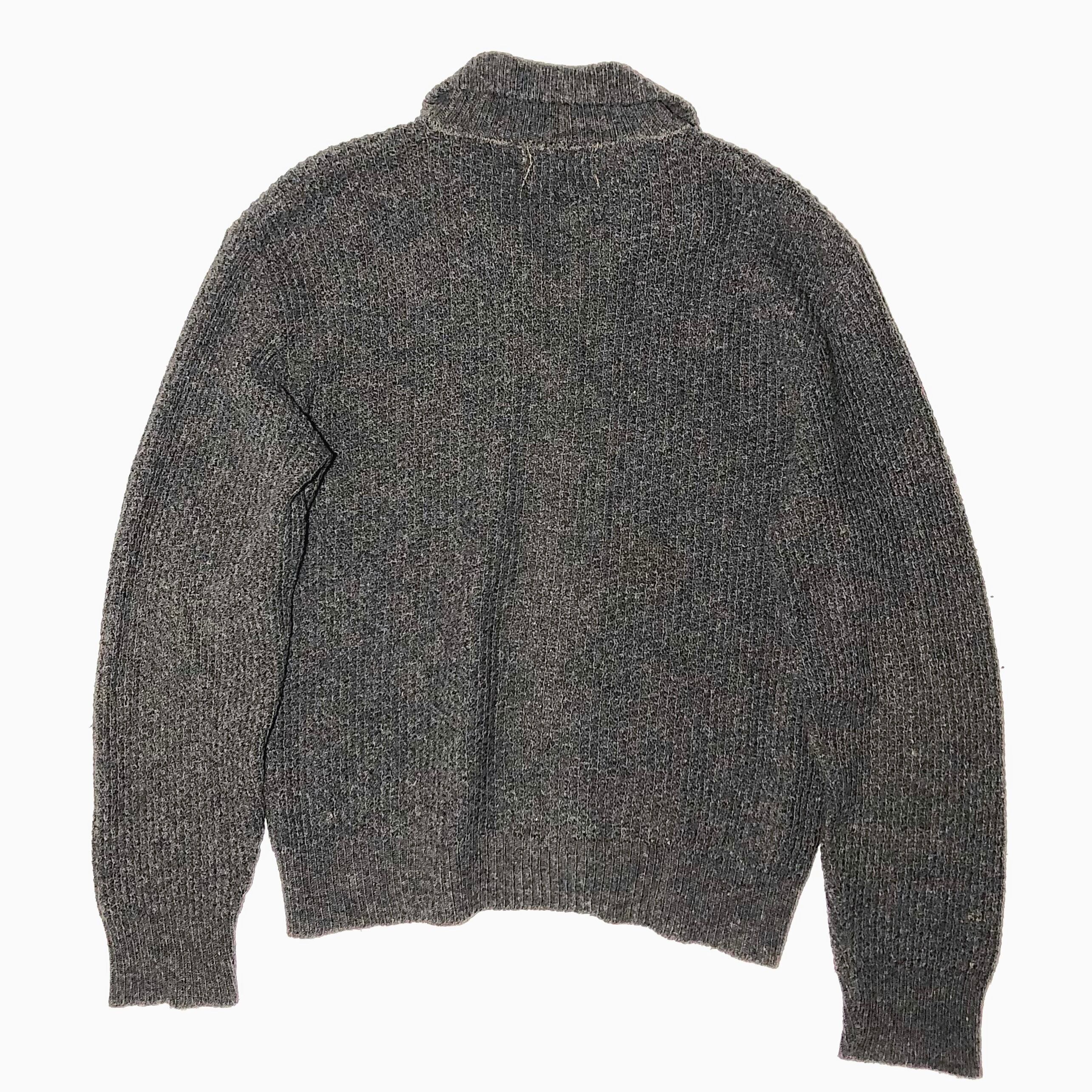 温かみのあるカラーリングと年代ならではの風合いが非常にクールなジップアップのニットカーディガン。