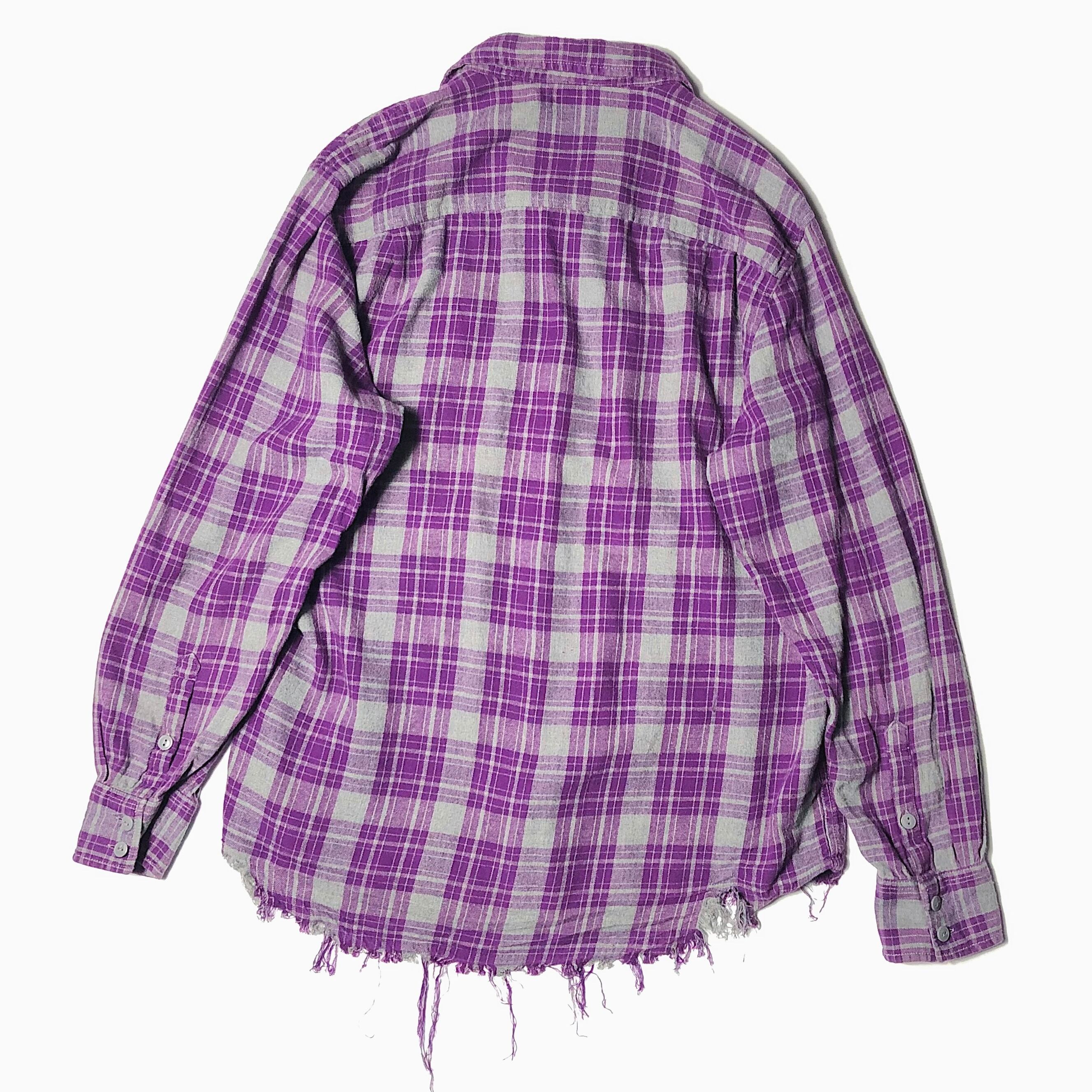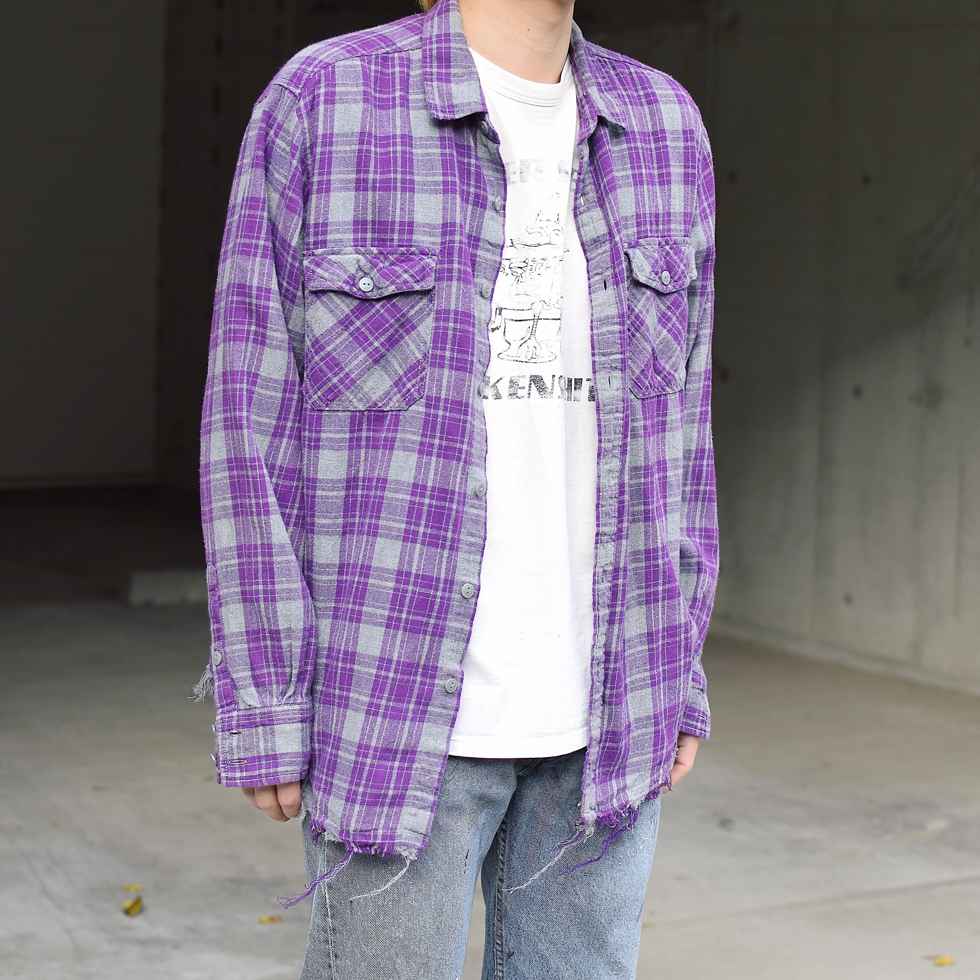 経年変化による風合いや裾のほつれが魅力的なグランジ感あふれるチェックシャツ。