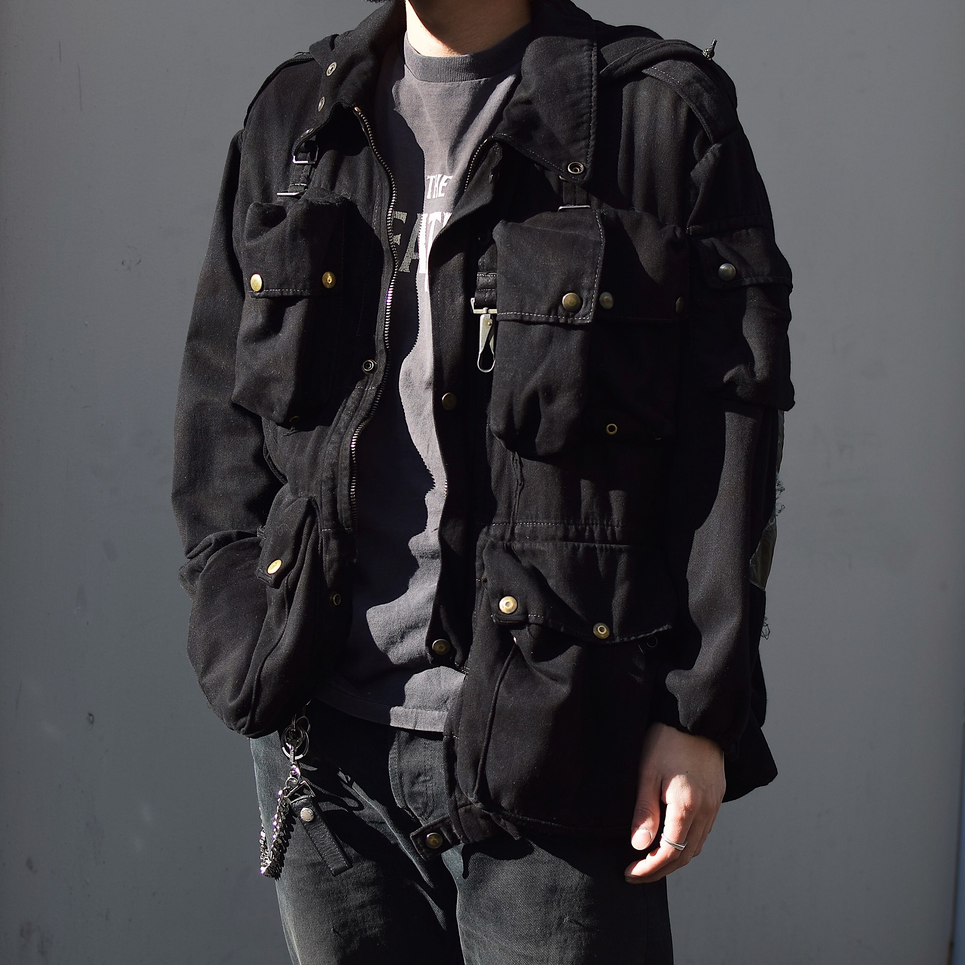 特徴的なディティールや経年変化による風合い、後染めによる落ち着いたカラーが抜群の雰囲気を放つクールな一着。